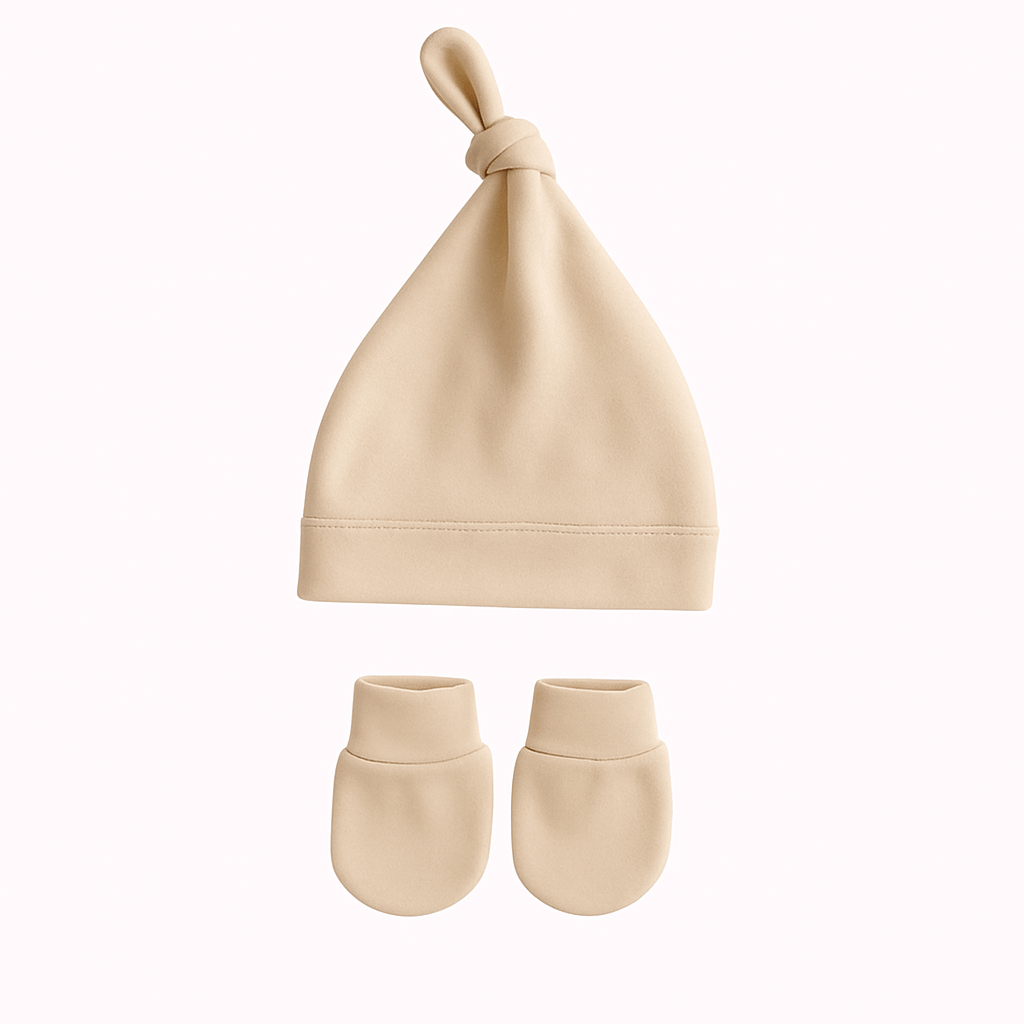 Zachte en ademende muts en wanten, gemaakt van 100% katoen.